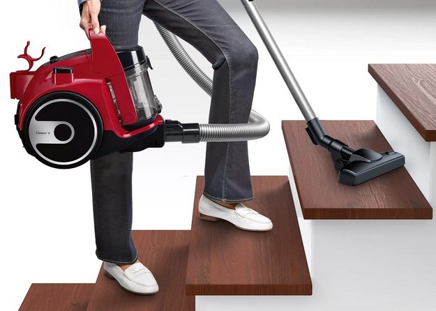 Прибор питается от электросети, поэтому проблем с внезапным отключением от недостатка заряда не возникнет. Корпус опирается на три колеса, поэтому его передвижение легкое, плавное, с быстрой сменой направления. Предусмотрена удобная система парковки — с которой пылесос занимает меньше места.
