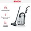 Пылесос Bosch BGL38WH2 имеет стандартную конфигурацию — корпус на колесах, крепящийся к нему шланг с трубками-удлинителями и насадками. Данная модель рассчитана только на сухую уборку, которой достаточно для большинства пользователей. Мощный поток воздуха позволяет быстро всасывать как мелкие, так и крупные частицы, волосы и шерсть. Основной цвет прибора — белый. Пылесборник-мешок — привычный вариант, с которым легко работать, можно не беспокоиться о чрезмерном расходе электроэнергии. Он тщательно запирает внутри крупную пыль, но может незначительно пропускает очень мелкие частицы. Объем заполнения пылесборника — 4 л.