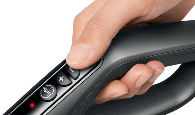 Регулировать силу всасывания удобно с помощью переключателей на рукоятке. Контролировать процесс просто — взгляните на дисплей. Благодаря индикаторам вам доступна информация: заполнения пылесборника.