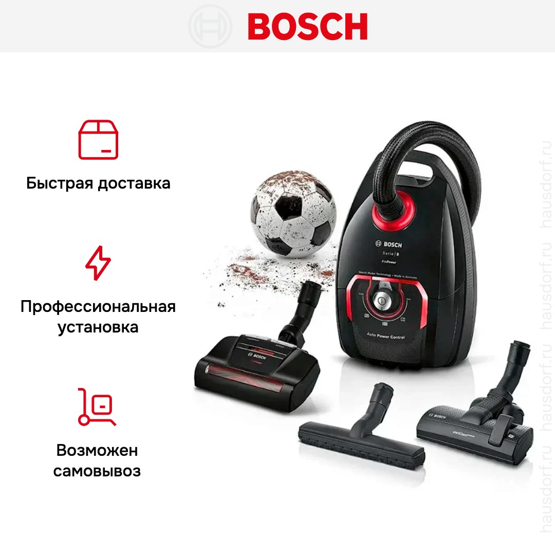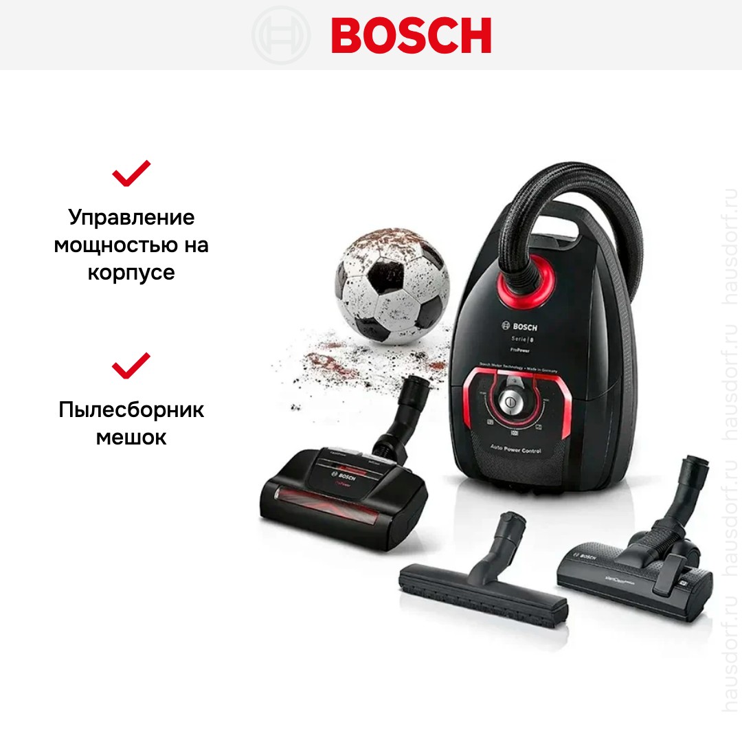 Пылесос Bosch BGL8POW2 имеет стандартную конфигурацию — корпус на колесах, крепящийся к нему шланг с трубками-удлинителями и насадками. Данная модель рассчитана только на сухую уборку, которой достаточно для большинства пользователей. Мощный поток воздуха позволяет быстро всасывать как мелкие, так и крупные частицы, волосы и шерсть. Пылесборник-мешок — привычный вариант, с которым легко работать, можно не беспокоиться о чрезмерном расходе электроэнергии. Он тщательно запирает внутри крупную пыль, но может незначительно пропускает очень мелкие частицы. Объем заполнения пылесборника — 5 л.