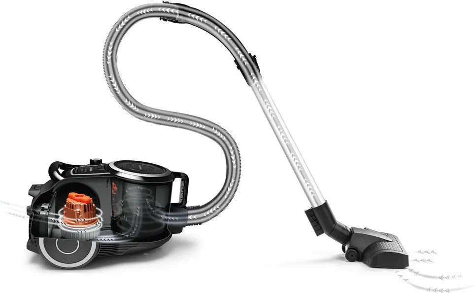 Компактные габариты — 26,7 см в высоту, 32,4 см в ширину и 47,4 см в глубину — обеспечивают удобное хранение даже в небольших помещениях. При этом вес в 8,3 кг остаётся вполне комфортным для перемещения по квартире или дому. Длинный сетевой кабель позволяет охватить радиус действия до 10 метров, что даёт возможность убирать просторные комнаты без необходимости часто переключать розетку.