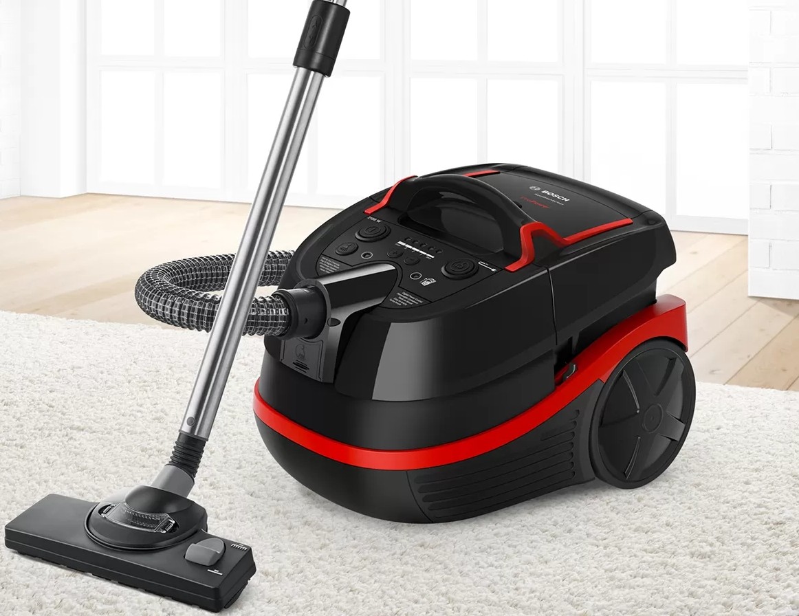 Пылесос Bosch BWD421POW имеет стандартную конфигурацию — корпус на колесах, крепящийся к нему шланг с трубками-удлинителями и насадками. Данная модель рассчитана на сухую и влажную уборку — удобный многофункциональный вариант для семей с детьми, владельцев животных, любителей растений и просто для тех, кто хочет без особых усилий поддерживать дома идеальную чистоту. Основной цвет прибора — черный. В качестве пылесборника производитель установил стандартный контейнер. Пользоваться им легко и удобно: чтобы очистить, просто достаньте его и высыпьте все в мусорное ведро, а затем протрите или вымойте емкость изнутри. Объем заполнения пылесборника — 2.5 л.