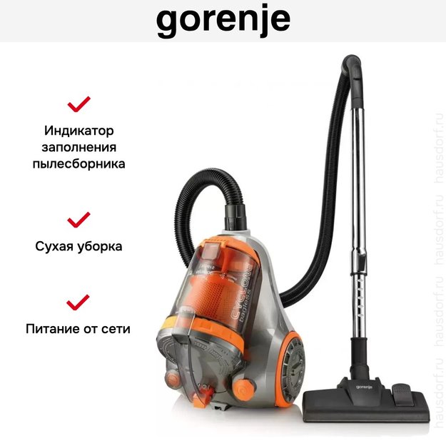Несколько насадок — включая универсальную щетку — позволяют убирать деревянные половицы, паркет, линолеум и разные виды ковров. Модель эффективно удаляет и мелкие загрязнения, и шерсть, и твердые частицы. Вы можете регулировать мощность с помощью поворотного регулятора, расположенного на корпусе. Индикатор заполнения контейнера облегчает контроль и уход за прибором.