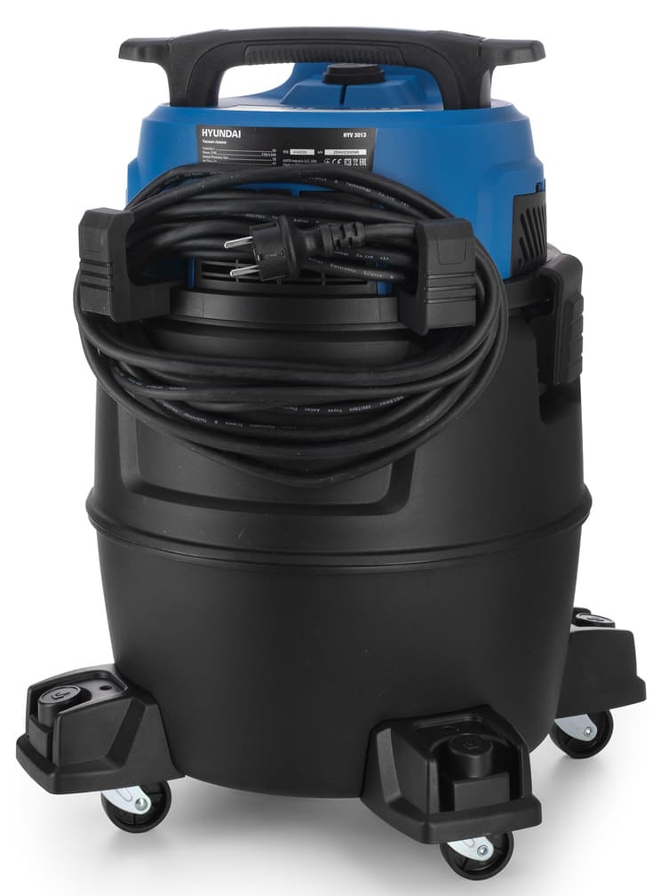 Пылесос Hyundai HYV 3013 имеет стандартную конфигурацию — корпус на колесах, крепящийся к нему шланг с трубками-удлинителями и насадками. Данная модель рассчитана на сухую и влажную уборку — удобный многофункциональный вариант для семей с детьми, владельцев животных, любителей растений и просто для тех, кто хочет без особых усилий поддерживать дома идеальную чистоту. Основной цвет прибора — черный. Пылесборник-мешок — привычный вариант, с которым легко работать, можно не беспокоиться о чрезмерном расходе электроэнергии. Он тщательно запирает внутри крупную пыль, но может незначительно пропускает очень мелкие частицы. Объем заполнения пылесборника — 30 л.
