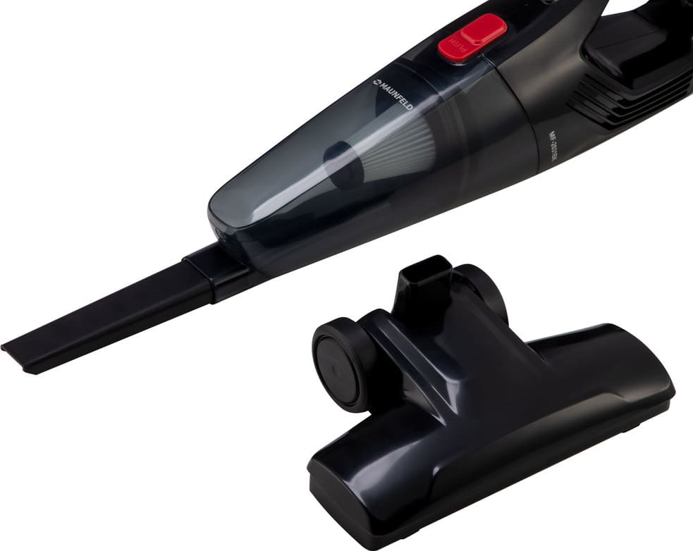 Вертикальный пылесос Maunfeld MF-2031BK отличается высокой ручкой с насадкой, благодаря которой не нужно наклоняться во время уборки, а также компактным корпусом. Данная модель рассчитана только на сухую уборку, которой достаточно для большинства пользователей. Мощный поток воздуха позволяет быстро всасывать как мелкие, так и крупные частицы, волосы и шерсть. Основной цвет прибора — черный. В качестве пылесборника производитель установил стандартный контейнер. Пользоваться им легко и удобно: чтобы очистить, просто достаньте его и высыпьте все в мусорное ведро, а затем протрите или вымойте емкость изнутри. Объем заполнения пылесборника — 1 л.
