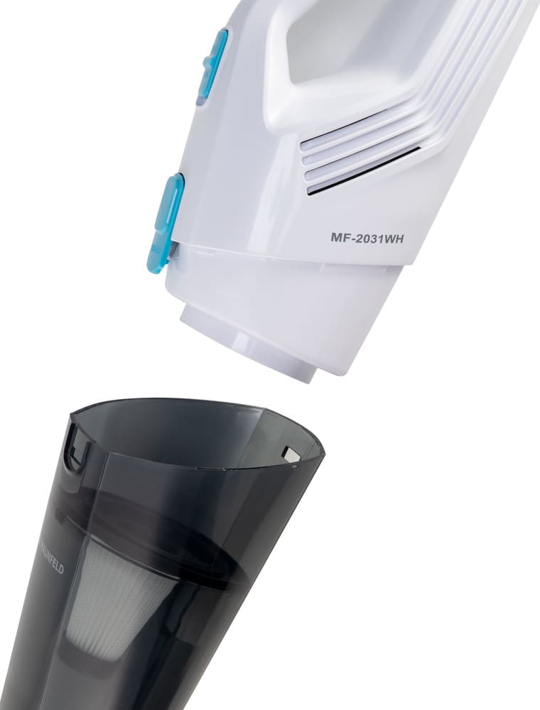 Вертикальный пылесос Maunfeld MF-2031WH отличается высокой ручкой с насадкой, благодаря которой не нужно наклоняться во время уборки, а также компактным корпусом. Данная модель рассчитана только на сухую уборку, которой достаточно для большинства пользователей. Мощный поток воздуха позволяет быстро всасывать как мелкие, так и крупные частицы, волосы и шерсть. Основной цвет прибора — белый. В качестве пылесборника производитель установил стандартный контейнер. Пользоваться им легко и удобно: чтобы очистить, просто достаньте его и высыпьте все в мусорное ведро, а затем протрите или вымойте емкость изнутри. Объем заполнения пылесборника — 1 л.