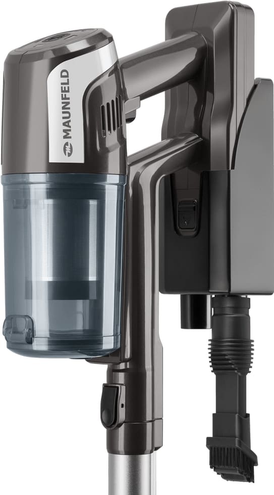 Вертикальный пылесос Maunfeld MF-2033GR отличается высокой ручкой с насадкой, благодаря которой не нужно наклоняться во время уборки, а также компактным корпусом. Данная модель рассчитана только на сухую уборку, которой достаточно для большинства пользователей. Мощный поток воздуха позволяет быстро всасывать как мелкие, так и крупные частицы, волосы и шерсть. Основной цвет прибора — серый. В качестве пылесборника производитель установил стандартный контейнер. Пользоваться им легко и удобно: чтобы очистить, просто достаньте его и высыпьте все в мусорное ведро, а затем протрите или вымойте емкость изнутри. Объем заполнения пылесборника — 0.5 л.