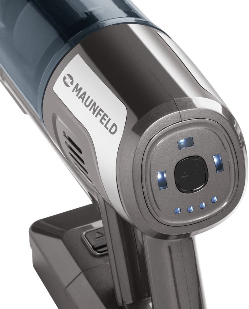 Тщательная уборка возможна за счет установленных фильтров, в их числе: Фильтр тонкой очистки. Регулировать силу всасывания удобно с помощью переключателей на рукоятке. Контролировать процесс просто — взгляните на дисплей. Благодаря индикаторам вам доступна информация: мощности, разрядки аккумулятора.