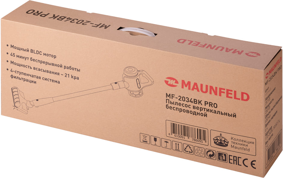 Вертикальный пылесос Maunfeld MF-2034BK PRO отличается высокой ручкой с насадкой, благодаря которой не нужно наклоняться во время уборки, а также компактным корпусом. Данная модель рассчитана только на сухую уборку, которой достаточно для большинства пользователей. Мощный поток воздуха позволяет быстро всасывать как мелкие, так и крупные частицы, волосы и шерсть. Основной цвет прибора — черный. В качестве пылесборника производитель установил стандартный контейнер. Пользоваться им легко и удобно: чтобы очистить, просто достаньте его и высыпьте все в мусорное ведро, а затем протрите или вымойте емкость изнутри. Объем заполнения пылесборника — 0.65 л.