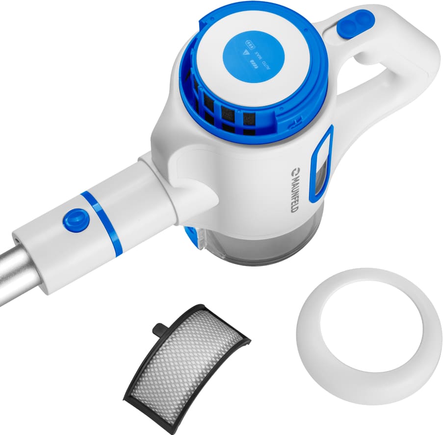 Вертикальный пылесос Maunfeld MF-2034BL PRO отличается высокой ручкой с насадкой, благодаря которой не нужно наклоняться во время уборки, а также компактным корпусом. Данная модель рассчитана только на сухую уборку, которой достаточно для большинства пользователей. Мощный поток воздуха позволяет быстро всасывать как мелкие, так и крупные частицы, волосы и шерсть. Основной цвет прибора — синий. В качестве пылесборника производитель установил стандартный контейнер. Пользоваться им легко и удобно: чтобы очистить, просто достаньте его и высыпьте все в мусорное ведро, а затем протрите или вымойте емкость изнутри. Объем заполнения пылесборника — 0.65 л.