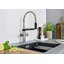 Устройство оснащено керамическим картриджем для плавного управления потоком и долгой службы без подтеков. Высота излива 19,6 см и длина 21,1 см обеспечивают удобный доступ к раковине и комфорт при наполнении высоких емкостей. Выдвижной излив добавляет мобильности и облегчает мытье крупных предметов и полоскание овощей. Угол поворота 360° делает эксплуатацию удобной для моек с двойными чашами.