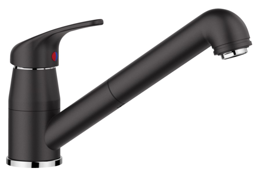 Внутри крана помещается шланг, который можно растянуть, чтобы достать струей воды до второй чаши мойки или тщательно сполоснуть посуду.