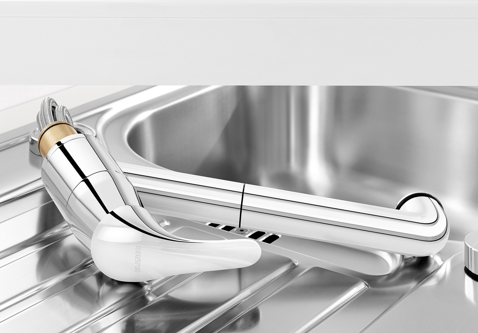Модель Blanco DARAS-S-F 521752 устанавливается привычным способом: на бортик мойки или ванной в предназначенные для этого отверстия (они могут быть вырезаны производителями заранее, но если нет, при достаточной ширине можно добавить их самостоятельно). Гибкая подводка позволяет расположить сантехнику в любом удобном месте, при этом нужно учитывать несколько важных нюансов: для максимальной надежности лучше выбирать сильфонные рукава, нельзя использовать ее вместо стационарного водопровода, только как соединительный элемент для крана. Благодаря специальному клапану смеситель не пропускает воду в обратном направлении — это защищает от проблем с водоснабжением как вас, так и ваших соседей.