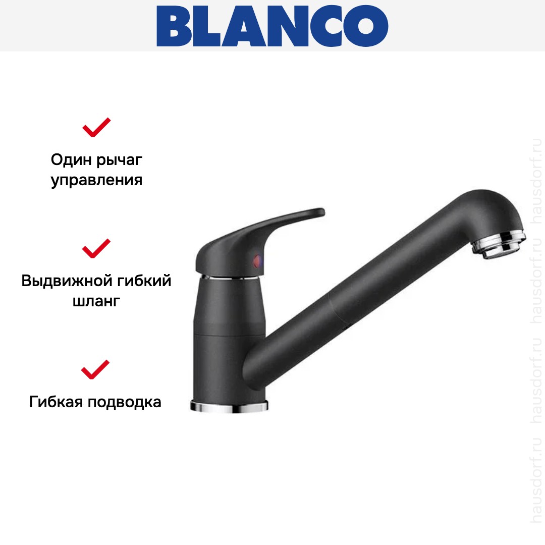 Смеситель Бланко — отличный выбор для кухни и ванной комнаты. Простая конструкция позволяет изменять напор и температуру воды с помощью одного рычага: двигайте его вправо-влево или вверх-вниз для достижения нужного результата. Эта модель подойдет современному интерьеру, будет незаменима, если в вашем распоряжении небольшое пространство для сантехники. Благодаря запорному механизму в виде керамических пластин такой смеситель прослужит много лет, так как в нем отсутствуют быстро стирающиеся прокладки; также на клапане практически не образуется накипь. При повороте ручки диски внутри смещаются относительно друг друга — открывают или блокируют воду.