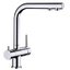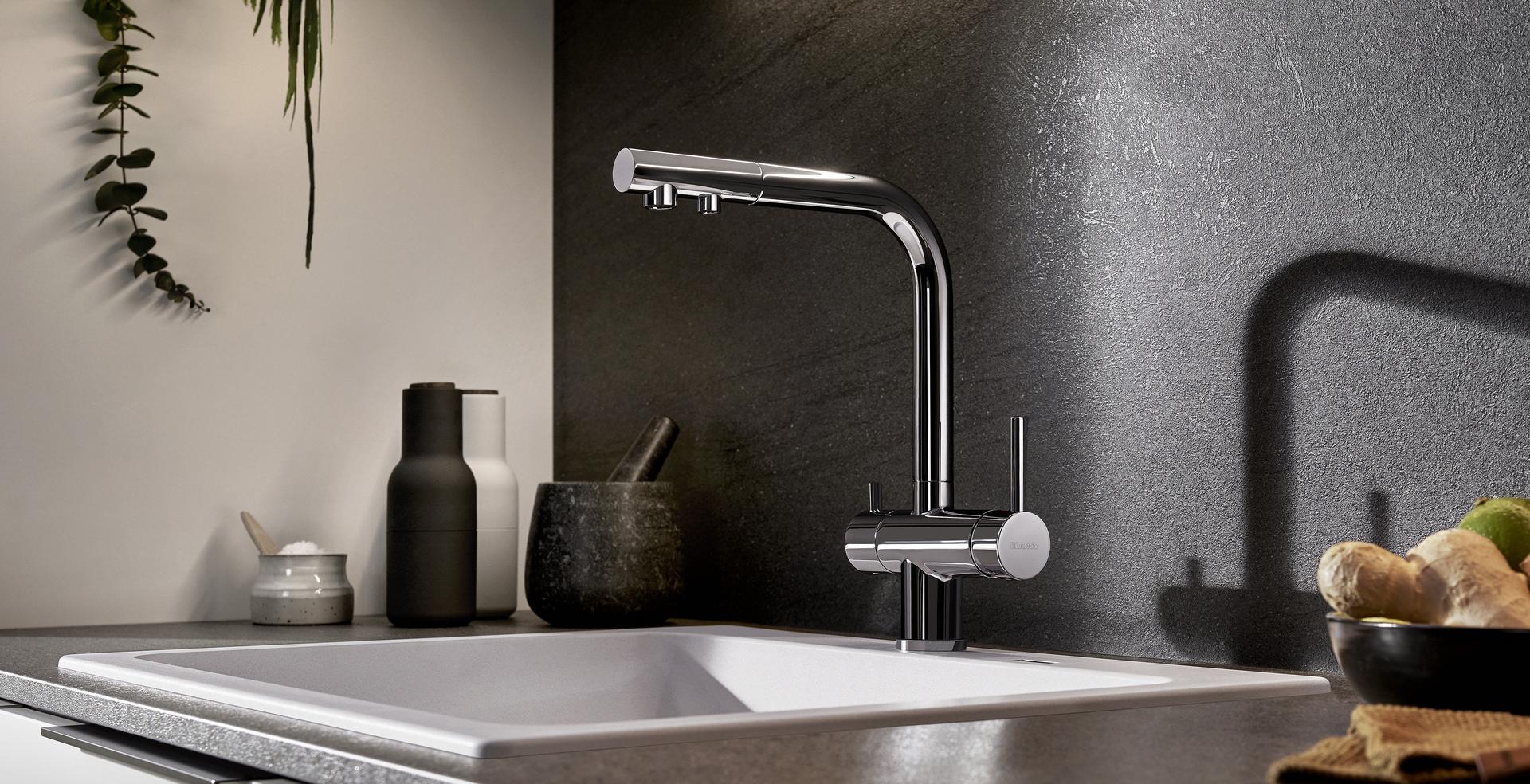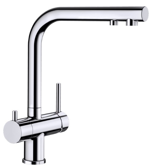 Рычаг для включения фильтрованной воды применяется в современных комбинированных смесителях, где из одного и того же излива подается и водопроводная, и питьевая вода. Такие смесители типа «два в одном» отличаются от обычных тем, что имеют не два подключения, а три, где третье соединяет смеситель с фильтром. Очищенная вода подается по изолированной трубке, проходящей внутри излива. Для удаления накипи, солей металлов, микроорганизмов и прочих вредных примесей могут применяться различные типы фильтров. Проточные фильтры устанавливаются под мойкой и включают несколько картриджей, которые необходимо менять по мере использования. С их помощью можно избавиться от таких примесей, как железо, хлор и многие другие. Устройства с системой обратного осмоса оснащаются диффузором, включающим картриджи для предварительной очистки и осмотическую мембрану, задерживающую практически все вредные примеси.