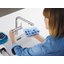 Благодаря особой конструкции вы можете также направить воду из раковины в ванну или из одной чаши мойки в другую одним поворотом крана в нужную сторону. Дополнительная деталь, которая повышает комфорт использования, — аэратор. Он делает поток воды мягче, насыщая его кислородом, таким образом дополнительно уменьшая ее расход: объем струи увеличивается за счет воздуха, а не за счет повышения напора из водопровода. К этой модели можно подключить фильтр для питьевой воды.
