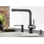 Смеситель Blanco Linus — это сочетание строгого стиля и функциональности, которое подчеркнёт современную кухню. Его матовый чёрный оттенок выглядит благородно и создаёт контраст с любыми светлыми поверхностями. Корпус выполнен из материала Silgranit, который имитирует камень, но легче и более гигиеничен. Такой материал стойко переносит перепады температуры и устойчив к мелким царапинам, благодаря чему покрытие сохраняет однородный цвет долгие годы. Минеральная основа обеспечивает приятную текстуру и низкую пористость, что облегчает уход и снижает риск образования пятен.