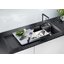 Внутри крана помещается шланг, который можно растянуть, чтобы достать струей воды до второй чаши мойки или тщательно сполоснуть посуду.