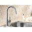 Внутри крана помещается шланг, который можно растянуть, чтобы достать струей воды до второй чаши мойки или тщательно сполоснуть посуду.