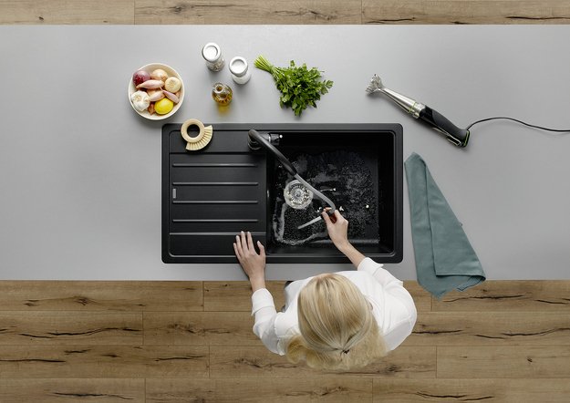 Смеситель Бланко — отличный выбор для кухни и ванной комнаты. Простая конструкция позволяет изменять напор и температуру воды с помощью одного рычага: двигайте его вправо-влево или вверх-вниз для достижения нужного результата. Эта модель подойдет современному интерьеру, будет незаменима, если в вашем распоряжении небольшое пространство для сантехники. Благодаря запорному механизму в виде керамических пластин такой смеситель прослужит много лет, так как в нем отсутствуют быстро стирающиеся прокладки; также на клапане практически не образуется накипь. При повороте ручки диски внутри смещаются относительно друг друга — открывают или блокируют воду.