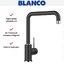 Смеситель Blanco Mili 526159 выполнен в элегантном черном цвете с контрастной хромированной вставкой, что придает изделию современный и стильный вид. Его компактные геометрические пропорции легко впишутся в интерьер любой кухни. Материал корпуса обладает аккуратной матовой текстурой, которая смягчает ощущение строгости и делает прибор визуально легким.