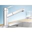 Специальная насадка позволяет выдвинуть излив как маленький шланг и направить струю в слишком высокую кастрюлю, которая не помещается под стационарным краном, на овощи в раковине, на загрязнения в неудобных уголках мойки, которые нужно удалить и т.д. Благодаря особой конструкции вы можете также направить воду из раковины в ванну или из одной чаши мойки в другую одним поворотом крана в нужную сторону. Дополнительная деталь, которая повышает комфорт использования, — аэратор. Он делает поток воды мягче, насыщая его кислородом, таким образом дополнительно уменьшая ее расход: объем струи увеличивается за счет воздуха, а не за счет повышения напора из водопровода.