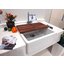 Длиной излива называется расстояние по горизонтали от основания смесителя до точки в раковине, куда падает струя воды. Учитывать длину при выборе смесителя и мойки так же важно, как и высоту. Основной фактор выбора: струя должна попадать в середину раковины, а не на одну из боковых поверхностей, чтобы не забрызгать столешницу и рядом стоящую бытовую технику. В идеале она должна попадать прямо на сливное отверстие, в крайнем случае место падения должно располагаться между сливным отверстием и передней стенкой. При этом нужно учитывать угол, под которым падает струя, а также расстояние от основания смесителя до ближайшей стенки раковины. Проводить измерения следует при максимальном напоре воды.