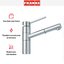 Внутри крана помещается шланг, который можно растянуть, чтобы достать струей воды до второй чаши мойки или тщательно сполоснуть посуду.
