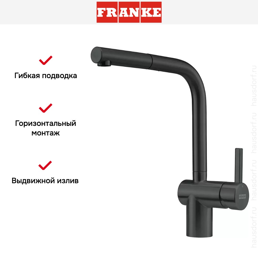 Смеситель Franke Atlas Neo чёрный Industrial, выдвижной шланг в Челябинске