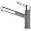 Выдвижной излив в кухонном смесителе — это гибкая трубка из резины в металлической оплетке, расположенная внутри основного излива. Для того, чтобы воспользоваться гибким изливом — например, наполнить высокую посуду, — достаточно включить воду и потянуть за головку, находящуюся на конце трубки.
