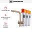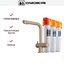 Смеситель выглядит выразительно и сдержанно: плавный изгиб излива, четкие очертания корпуса и теплый, уютный оттенок Карамель создают цельный образ, который органично впишется в светлые и контрастные кухни. Пропорции продуманы: излив вытянут, а форма корпуса подчеркивает элегантность силуэта.