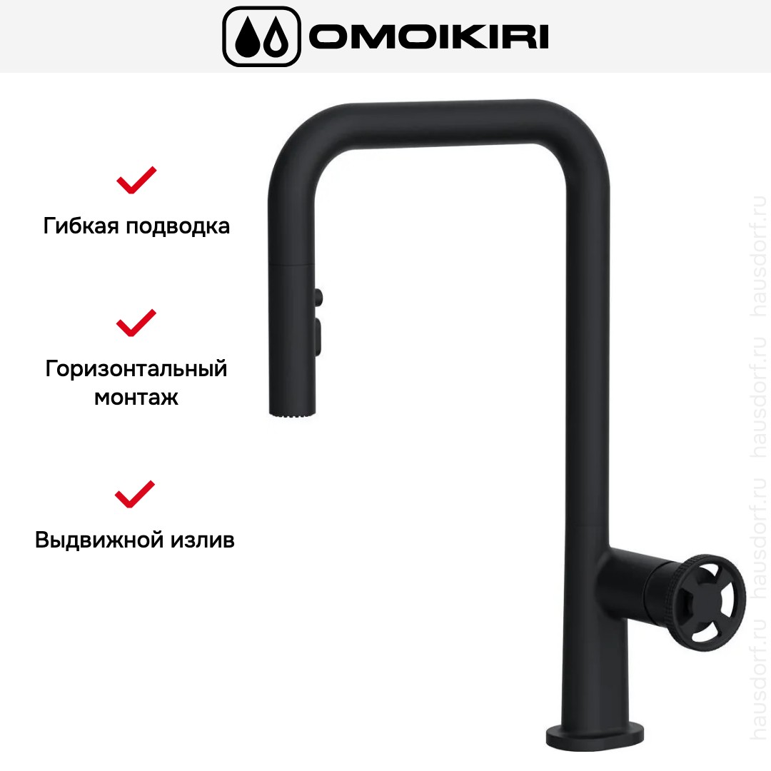 Смеситель OMOIKIRI Arita SB GB — элегантный и функциональный вариант для современной кухни. Графитовый оттенок придаёт изделию сдержанную солидность и легко вписывается в интерьеры в стиле лофт и хай-тек. Поверхность не только декоративна, но и практична: тёмный тон маскирует мелкие загрязнения и следы воды, что облегчает уход. Компактные габариты 27.7×12.8×41.3 см делают его удобным даже для небольших моек, а высота излива 22.8 см обеспечивает достаточный зазор для высокой посуды.