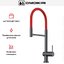 Выдвижной излив в кухонном смесителе — это гибкая трубка из резины в металлической оплетке, расположенная внутри основного излива. Для того, чтобы воспользоваться гибким изливом — например, наполнить высокую посуду, — достаточно включить воду и потянуть за головку, находящуюся на конце трубки.