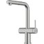 Смеситель с подключением к фильтру для воды — современная модель, которая облегчает быт. Вместо двух соединений с водопроводом у таких вариантов их три, а трубка, по которой идет отфильтрованная вода, находится внутри крана. Чуть дальше основного отверстия, через которое подается поток в раковину, расположено отверстие поменьше — для питьевой воды.