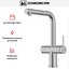 Модель Omoikiri KARATSU-S BN устанавливается привычным способом: на бортик мойки или ванной в предназначенные для этого отверстия (они могут быть вырезаны производителями заранее, но если нет, при достаточной ширине можно добавить их самостоятельно). Гибкая подводка позволяет расположить сантехнику в любом удобном месте, при этом нужно учитывать несколько важных нюансов: для максимальной надежности лучше выбирать сильфонные рукава, нельзя использовать ее вместо стационарного водопровода, только как соединительный элемент для крана.