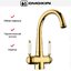 Смеситель с подключением к фильтру для воды — современная модель, которая облегчает быт. Вместо двух соединений с водопроводом у таких вариантов их три, а трубка, по которой идет отфильтрованная вода, находится внутри крана. Чуть дальше основного отверстия, через которое подается поток в раковину, расположено отверстие поменьше — для питьевой воды.