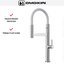 Высота излива — один из важнейших параметров, которые необходимо учитывать при выборе кухонного смесителя. Высотой называется расстояние от поверхности, на которой установлен смеситель, до его носика, то есть это, по сути, длина струи воды. Подбирать модель по высоте следует так, чтобы в раковину без труда помещались любые емкости, которыми вы пользуетесь, включая большие кастрюли и высокие вазы, а вода при ударе о дно раковины не разбрызгивалась во все стороны. Чем больше высота излива, тем глубже должна быть раковина.