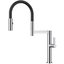 Для использования режима душа смесители оснащаются, как правило, выдвижным изливом, который имеет насадку-душ. В конструкцию у них добавляется элемент, который способен переключать направление струи с обычного излива на гибкий. Отдельный гибкий шланг вытягивается наружу за эту насадку из корпуса излива. Длина его может составить до 1,5 м, что поможет также вымыть все уголки раковины и наполнить емкости любого размера. Кроме смесителей с одним выдвижным изливом , производители предлагают полупрофессиональные модели с двумя изливами.