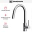 Высота излива — один из важнейших параметров, которые необходимо учитывать при выборе кухонного смесителя. Высотой называется расстояние от поверхности, на которой установлен смеситель, до его носика, то есть это, по сути, длина струи воды. Подбирать модель по высоте следует так, чтобы в раковину без труда помещались любые емкости, которыми вы пользуетесь, включая большие кастрюли и высокие вазы, а вода при ударе о дно раковины не разбрызгивалась во все стороны. Чем больше высота излива, тем глубже должна быть раковина.