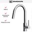 Внутри крана помещается шланг, который можно растянуть, чтобы достать струей воды до второй чаши мойки или тщательно сполоснуть посуду.