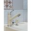 Поворотный излив означает, что вы сможете направить поток воды не только по центру, но и в сторону — и даже с раковины в ванну, если излив достаточно длинный. Угол поворота может быть разным, в зависимости от того получится сдвинуть кран на 180 или 360 градусов. С таким изливом проще мыть посуду и продукты, крупные предметы.