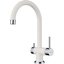 Для подачи чистой воды смесители могут оснащаться единственным рычагом, при помощи которого производится переключение на фильтр. Этот же рычаг регулирует напор и температуру водопроводной воды. Чаще на изливе имеются два рычага, один из которых отвечает только за включение фильтрованной воды.