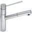 Выдвижной излив в кухонном смесителе — это гибкая трубка из резины в металлической оплетке, расположенная внутри основного излива. Для того, чтобы воспользоваться гибким изливом — например, наполнить высокую посуду, — достаточно включить воду и потянуть за головку, находящуюся на конце трубки.