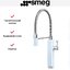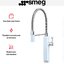 Смеситель Smeg пастельно-голубого цвета идеально подходит кухне с ретро-дизайном и техникой в стиле 50-х. У него выдвижной и поворотный излив, можно установить на островной мойке или около стены. Оснащен системами экономии воды.