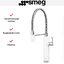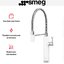 Белый смеситель Smeg с выдвижным изливом подходит линейке бытовой техники в стиле 50-х годов. Его можно установить двумя способами: островным или пристенным. Оснащен системами Water Saving Cartridge и Energy Saving Cartridge. Благодаря им можно экономить, сокращая напор или оставляя только холодную воду.
