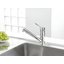 Практическая геометрия излива — высота 15,6 см и длина 22,4 см — обеспечивает комфортную зону для работы над раковиной. Такая высота подходит для большинства стандартных моек и позволяет без лишних брызг размещать крупную посуду. Поворотная конструкция излива увеличивает мобильность и удобство при мытье двухсекционных раковин или при необходимости направить струю в разные зоны.