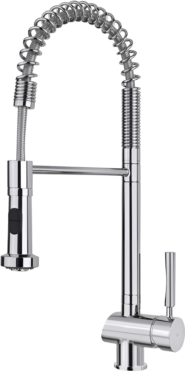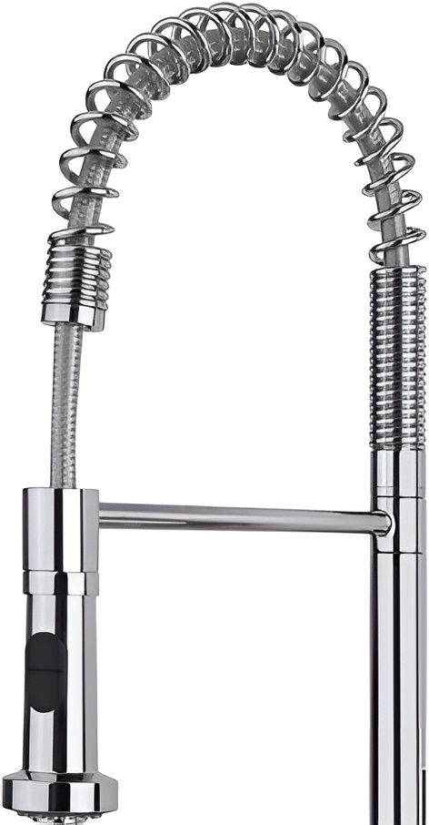 Выдвижной излив в кухонном смесителе — это гибкая трубка из резины в металлической оплетке, расположенная внутри основного излива. Для того, чтобы воспользоваться гибким изливом — например, наполнить высокую посуду, — достаточно включить воду и потянуть за головку, находящуюся на конце трубки.