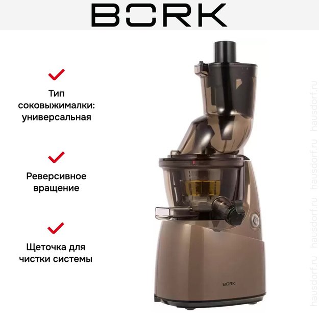 Шнековый сокопресс позволяет быстро отжать до 1,4 литра сока — можно использовать даже крупные куски и цельные фрукты и ягоды. Оборудован защитными механизмами на случай перегрузки или перегрева.