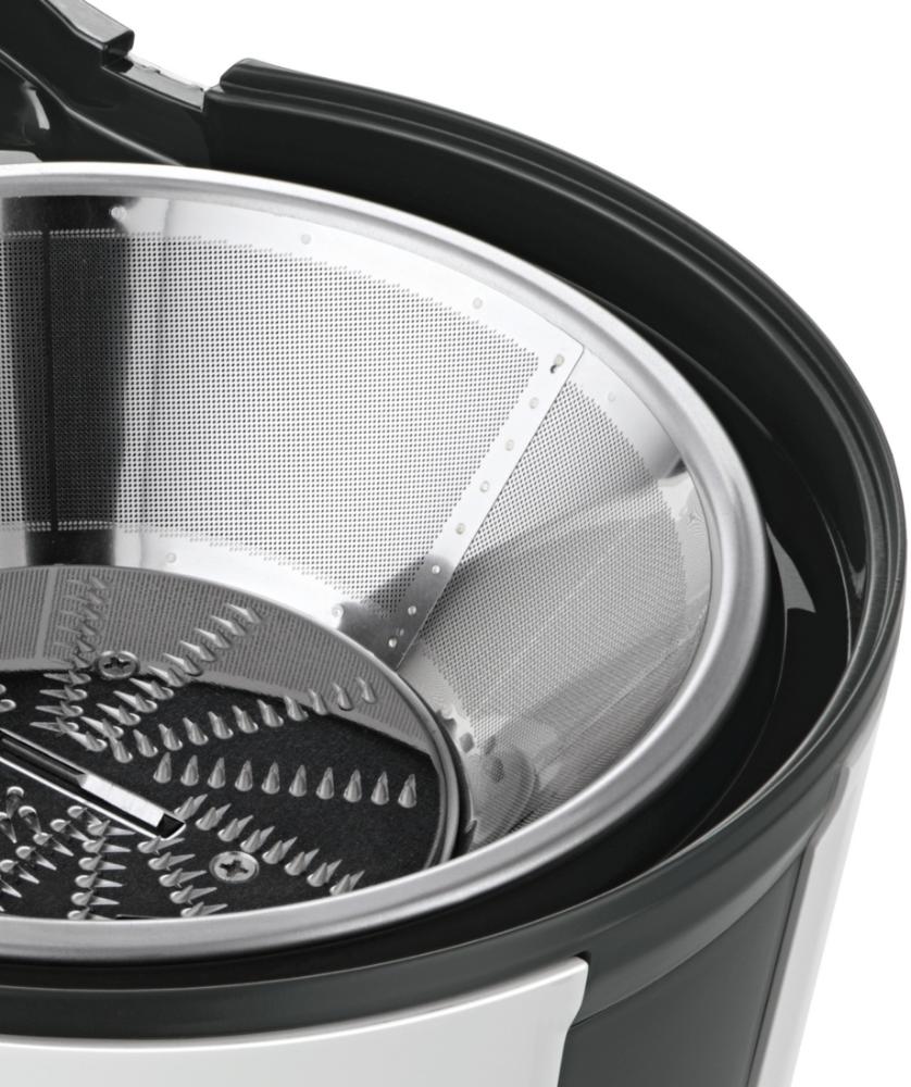Контейнер для мякоти в соковыжималках представляет собой резервуар из прочного пластика, куда автоматически посредством специальной системы отвода мякоти сбрасываются отходы, или жмых, на протяжении всего процесса приготовления сока. Контейнер легко снимается для очистки под струей воды.