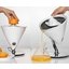 Соковыжималка для цитрусовых позволяет получить сок из лимонов, лаймов, апельсинов. Их достаточно разрезать пополам, поместить разрезом вниз на ребристый конус-наконечник и удерживать вручную или с помощью пресса. При включении прибора конус вращается, сок отжимается и стекает в контейнер.